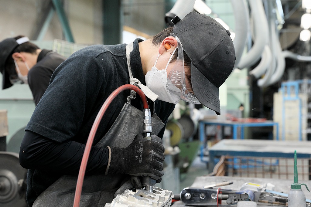 主な仕事内容 | アルミダイカスト、FRP素材のバリ取りや研磨作業を行っていただきます。 |
